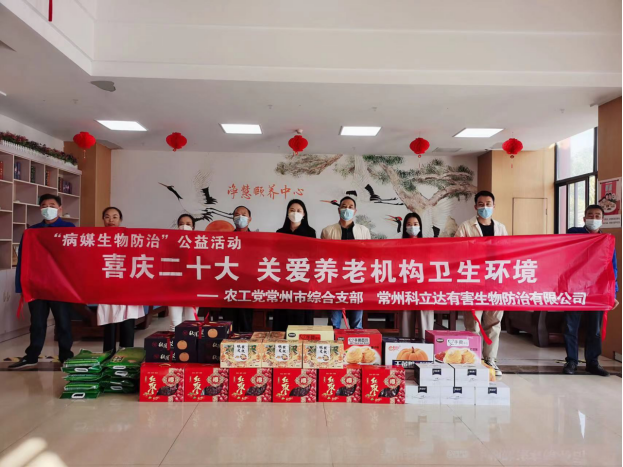 喜慶二十大,關(guān)愛養(yǎng)老機構(gòu)衛(wèi)生環(huán)境 -“病媒生物防治”公益活動 2022年10月16日,在全國人民喜慶中國共產(chǎn)黨二十大召開之際,武進區(qū)愛衛(wèi)辦、農(nóng)工黨常州市綜合支部、常州科立達有害生物防治有限公司,聯(lián)合開展“喜 慶二十大,關(guān)愛養(yǎng)老機構(gòu)衛(wèi)生環(huán)境-病媒生物防治公益活動”,本次公益活動在牛塘凈慧頤養(yǎng)中心開展,武進區(qū)民政局陳志見科長應(yīng)邀參加本次活動。